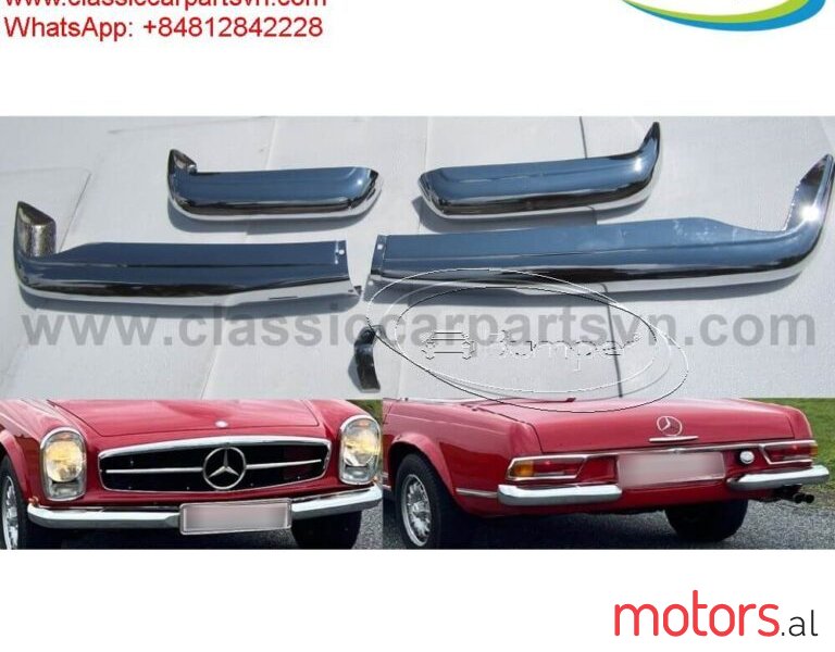 Mercedes Pagode W113 models 230SL 250SL 280SL year (1963 -1971) bumpers. A set of 1 front bumper in 2 parts with front joining stripe, 2 rear bumpers, bolts and screw. The product has shape and size like the original samples. So, They perfect fit on the car. Products are made of 304 stainless steel imported from Japan and India, especially with a chrome content higher than 30%, so they never rust, do not corrode or peel over time. Polished product – with a perfect shine (like chrome). This is the perfect replacement. Please visit the link: classiccarpartsvn.com/product/mercedes-pagode-w113-1963-1971-bumpers/ If you need all parts for any classic car, please contact me. Web: classiccarpartsvn.com Email: {censored} Fanpage: facebook.com/profile.php?id=100088684251588 WhatsApp: +84 81 284 2228